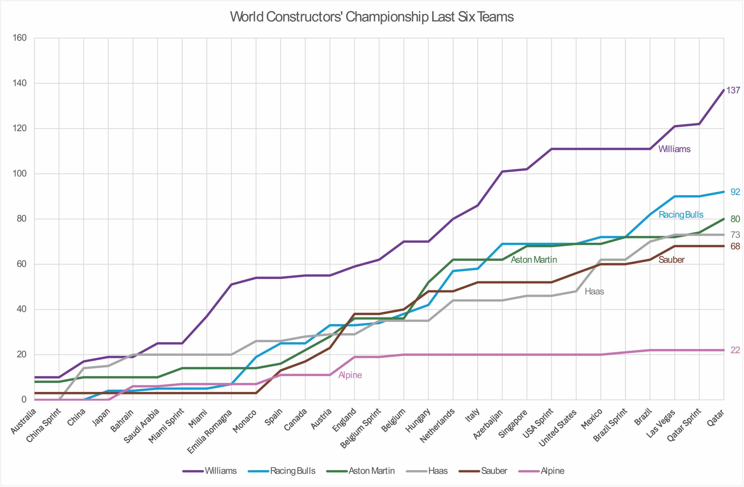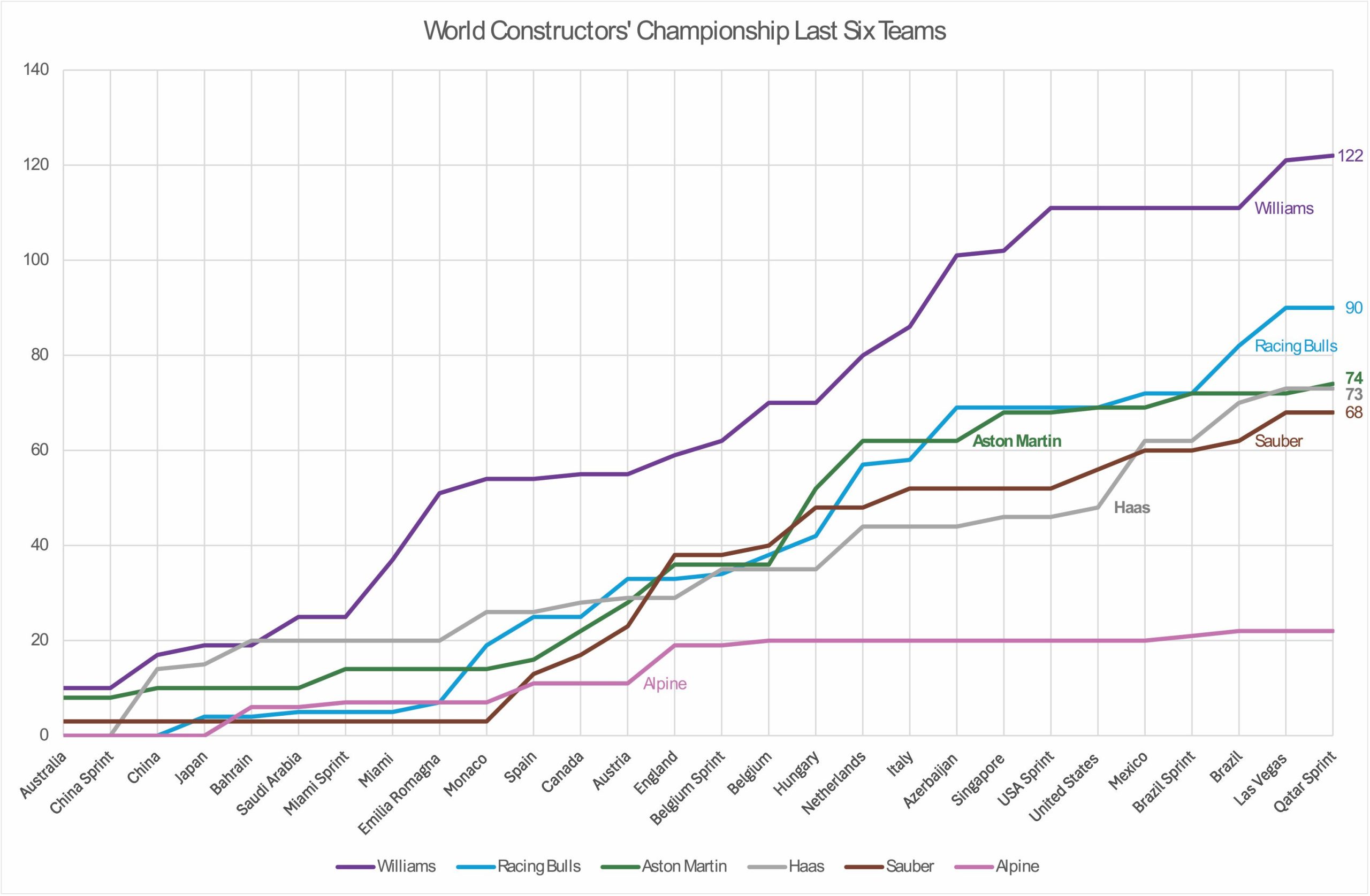 A closer look at the last 6 teams’ F1 World Constructors’ Championship-