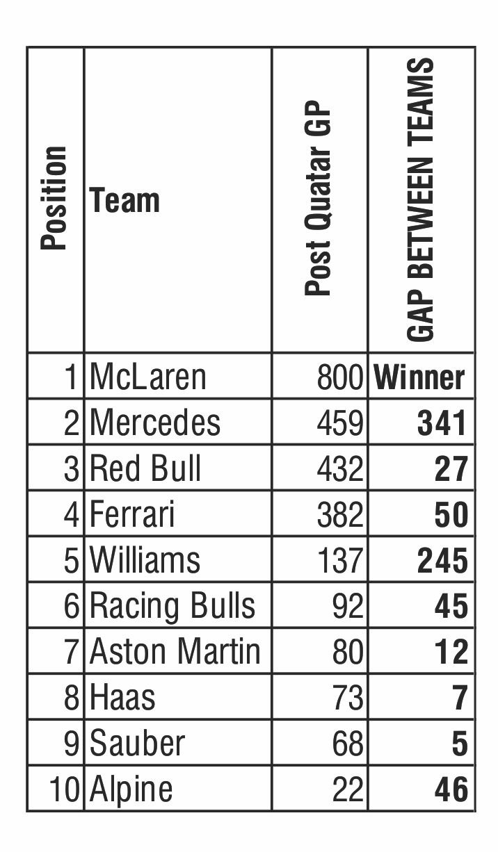 Since the Singapore GP, McLaren are the F1 World Constructors’ Champions. The competition between Mercedes, Red Bull and Ferrari for the lucrative second place before the F1 Qatar weekend was fierce.