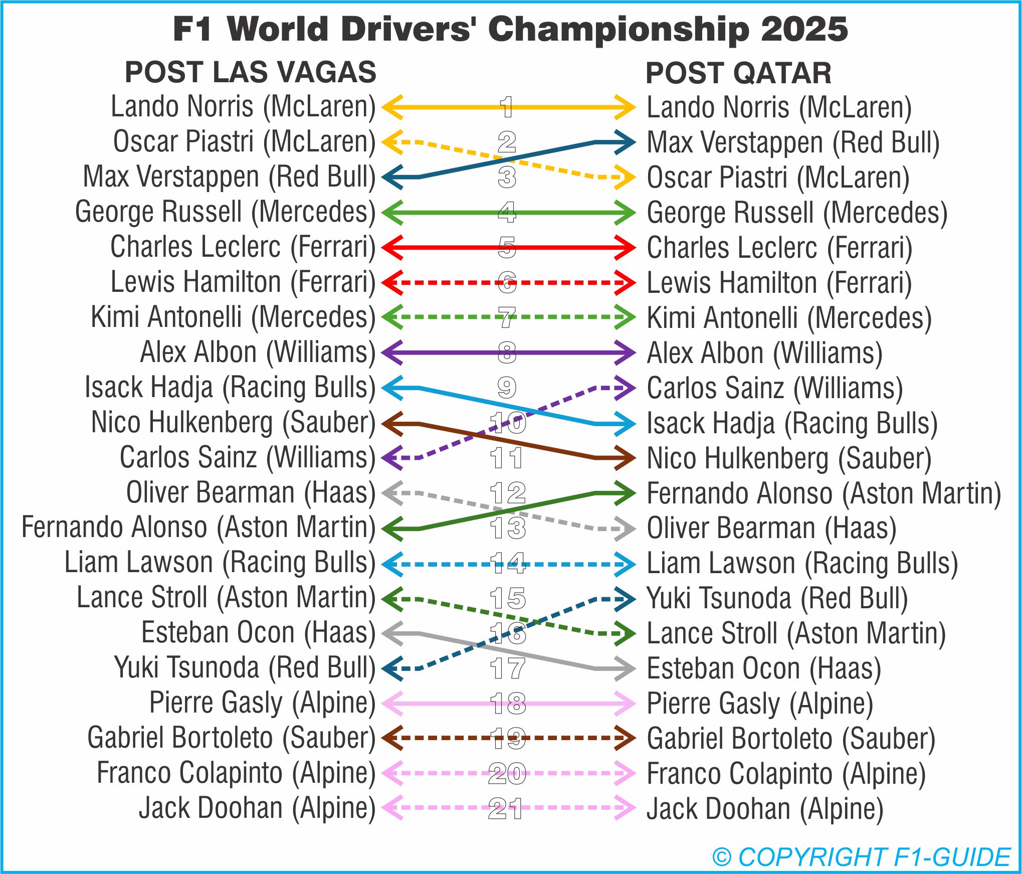 There was enough change in the F1 World Drivers’ Championship to merit this graphic-