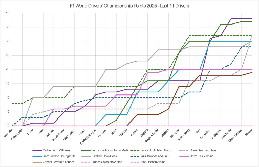 With the World Constructors’ Championship already decided, the teams remain battling for the millions in prize money. This is also fascinating. Ferrari are now 2 points ahead of Mercedes and Haas has just overtaken Sauber.