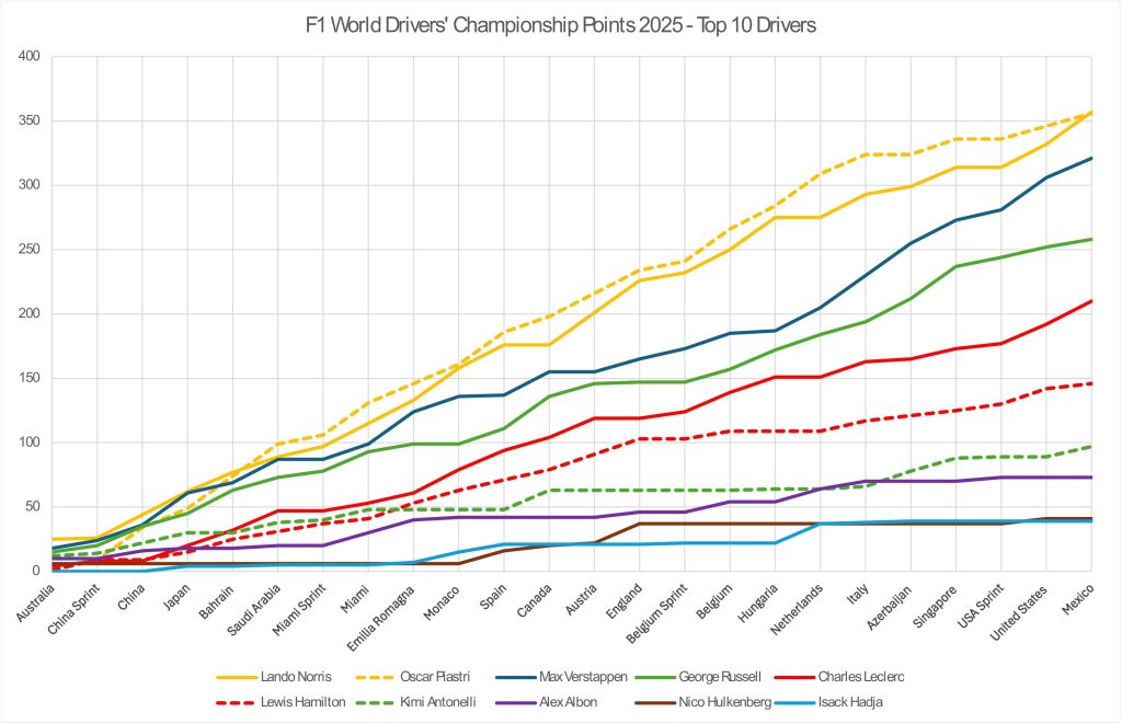 The World Drivers’ Championship has really hotted up. With Lando Norris (McLaren) just one point ahead of his teammate Oscar Piastri and the outsiders Max Verstappen (Red Bull) and George Russell (Mercedes) having suffered from “altitude and heat problems” the next four events are highly anticipated.